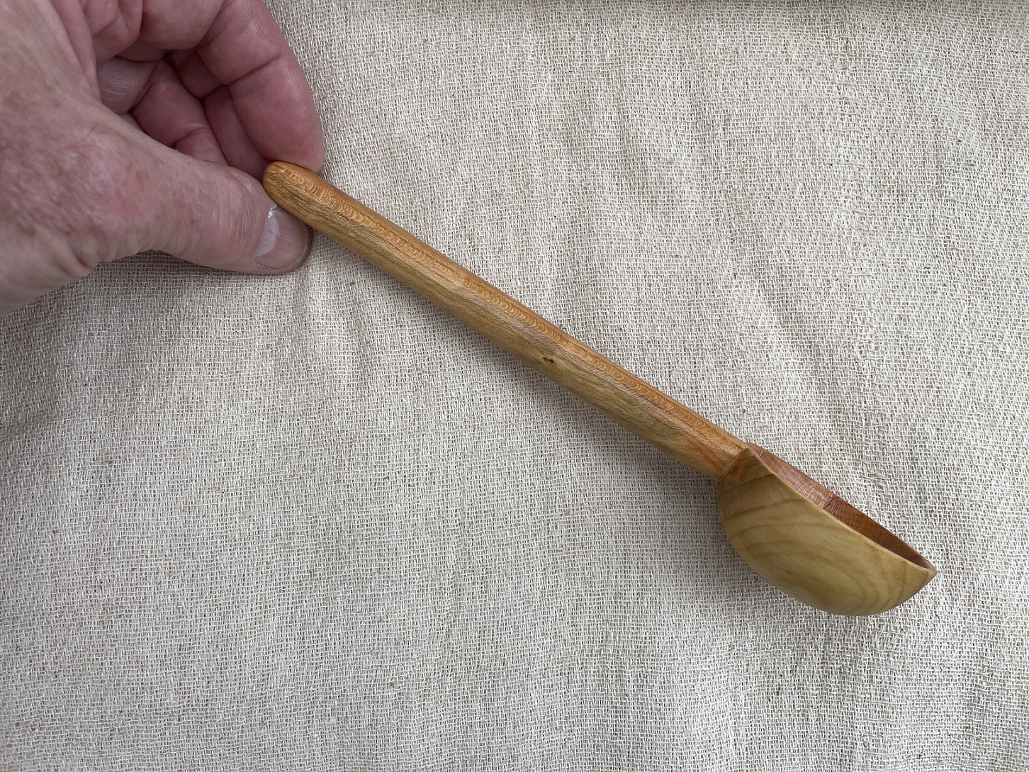 | 8” hand carved long handle scoop. Plum with tung oil finish.