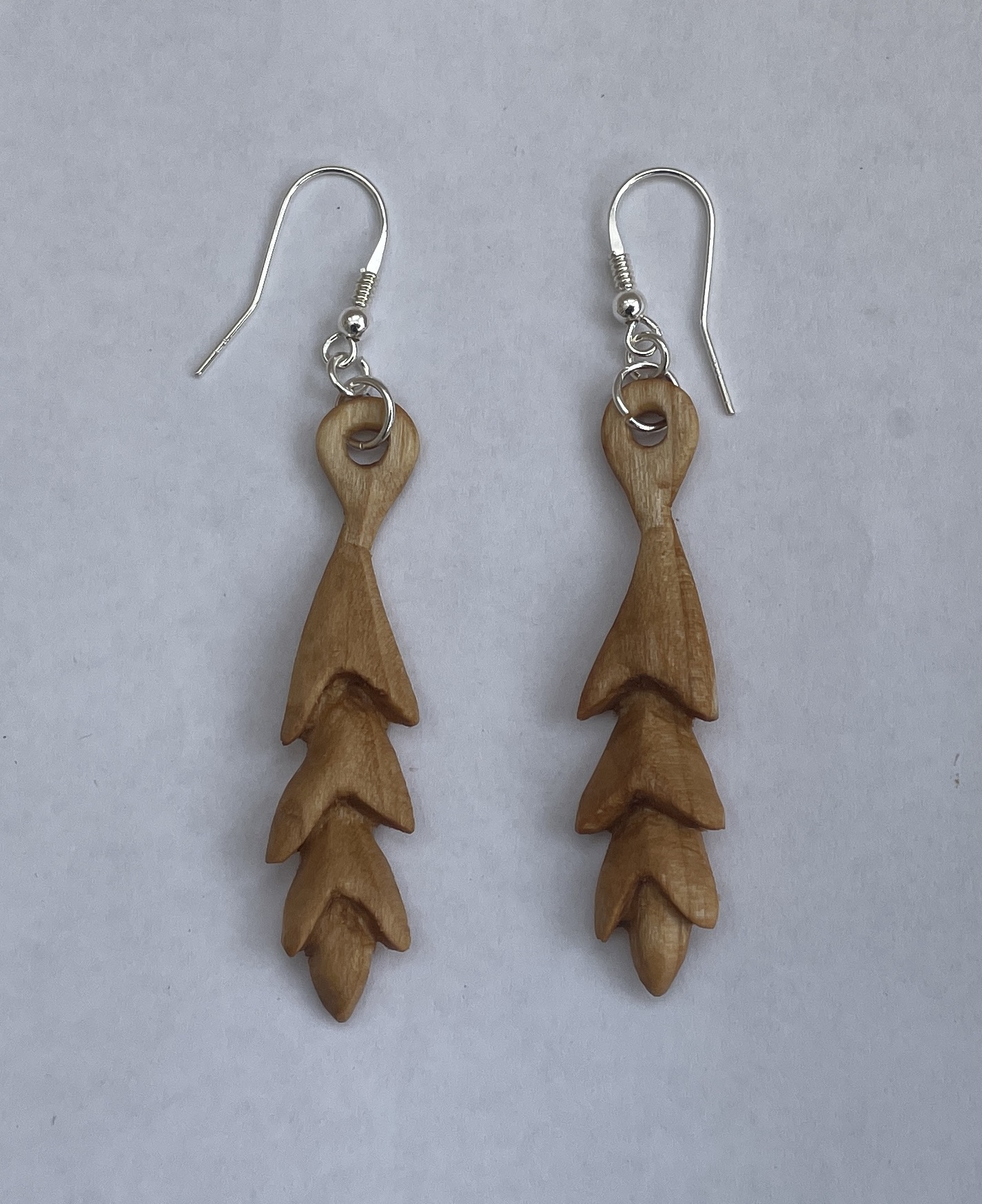 | Samara earrings. Hand carved from cherry with beeswax polish.